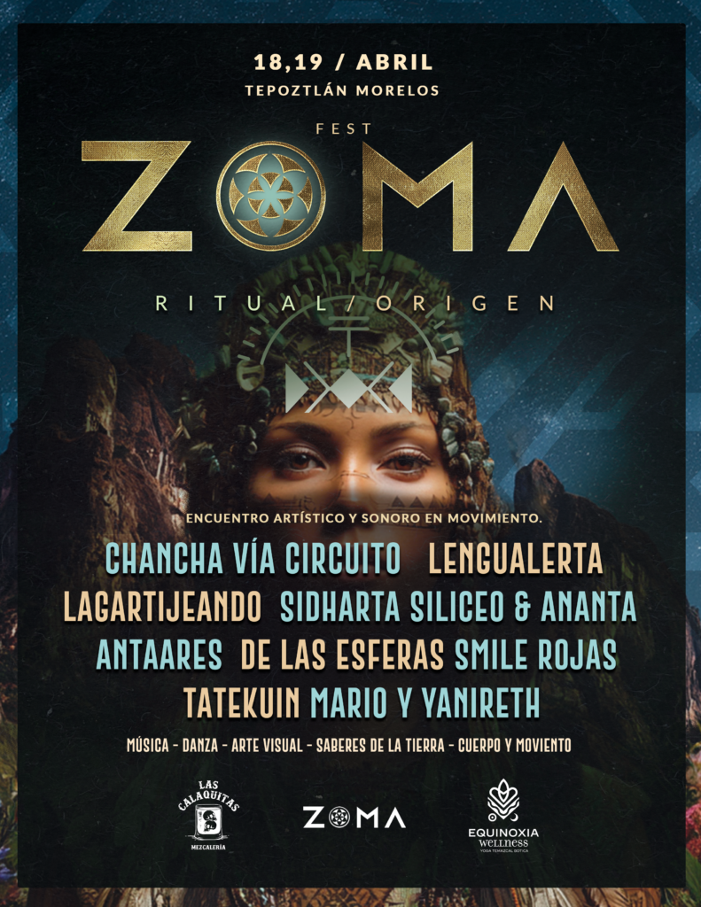 17, 18 y 19 de Abril 2026 RESERVA TU LUGAR Incluye acceso al festival 18 y 19 de AbrilIncluye zona de talleres general.No incluye camping ni hospedaje. Incluye acceso al festival MASTERNoche íntima 17 de Abril.Talleres master y talleres general.No incluye camping ni hospedaje. MúsicaConoce el Line Up del evento TalleresPendientes de asignación. HospedajeNuestro anfitrión Ekko Hostal, ofrece camping: $250 por persona. También podemos recomendarte otras opciones.RESERVAR CON EKKO Misión:ZOMA Ritual Fest es un encuentro de música, arte y conciencia que teje comunidad y despierta el espíritu, creando experiencias seguras, incluyentes y sostenibles que celebran la vida y el cambio de conciencia colectivo.